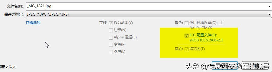 最后在PS里面对照片进入修改调色等等操作之后导出或另存为jpg时,一定要勾选sRGB选项。(如果照片只用于网络发布,导出时就选择sRGB,如果是用于印刷就选择aRGB)