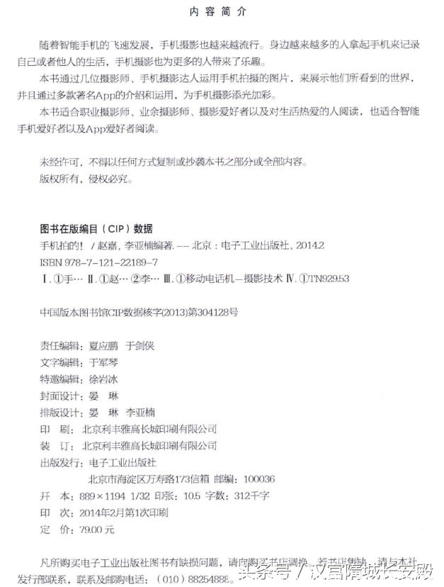 《手机拍的!》适合职业摄影师、业余摄影师、摄影爱好者以及对生活热爱的人阅读,也适合智能手机爱好者以及APP爱好者阅读。